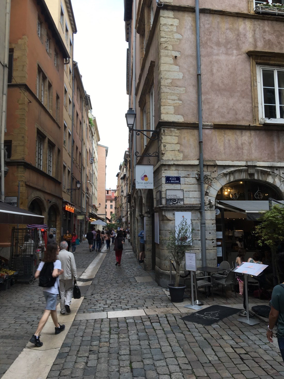 We boarded the plane on time, in this case an Airbus 380. This Airbus is massive— you have the joy of flying with over 500 of your best friends. We were on the top floor, which felt like an entire plane itself. Of course we were delayed by 90 minutes before departure, which was attributed to having a passenger in a wheelchair. I wonder how he felt being rolled aboard when it was just announced that this delay was due entirely to him! It was an interesting yet uneventful flight to Paris to make our connection to Lyon. I was able to watch a couple of French movies, subtitled, which somehow all seem to have two required scenes– an argument in a smoke-filled bar and also a journey through the French countryside in a beat-up Peugeot.